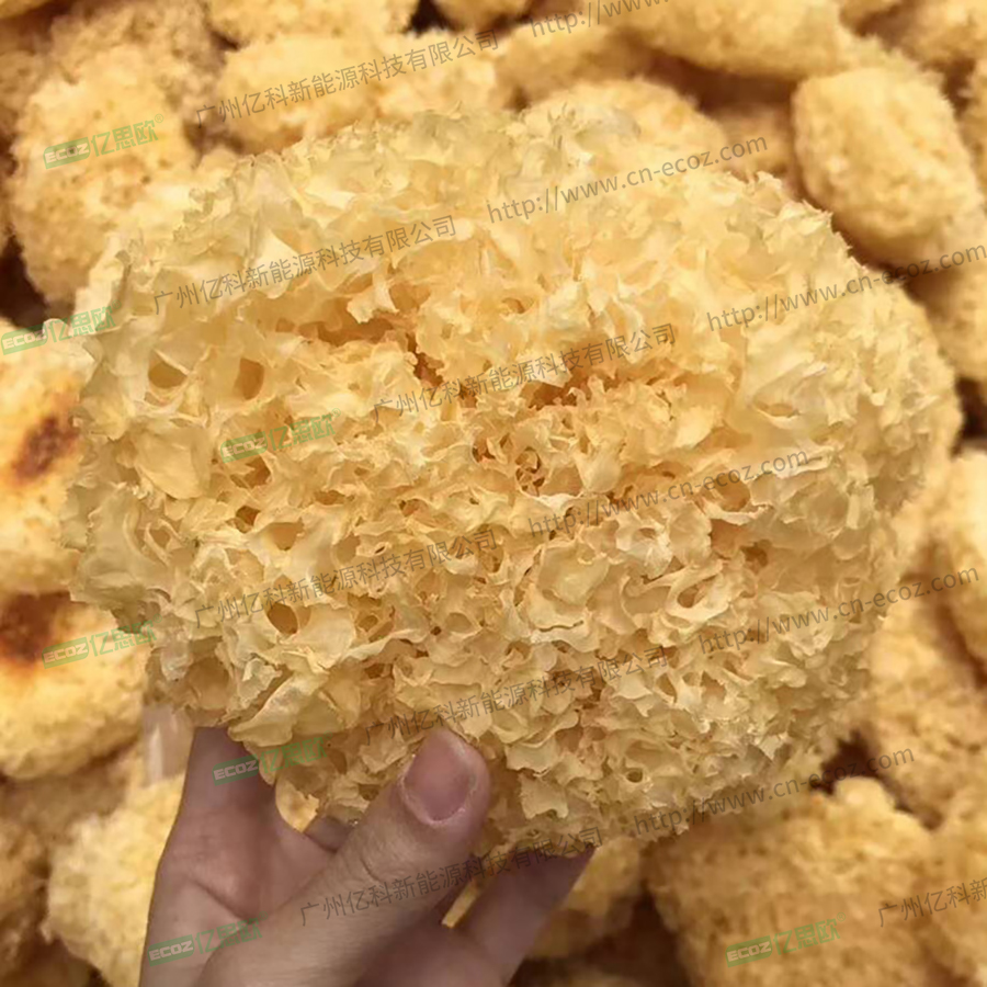 第三部,銀耳脫水干燥。經(jīng)前處理的銀耳,用億思?xì)WEZCOZ烘干機(jī)先在50-60℃的溫度下用較大的通風(fēng)量脫水干燥4-6小時(shí),然后在65-70℃的溫度下再脫水干燥2-3小時(shí),當(dāng)銀耳的含水量下降到10-13%時(shí),即可完成脫水干燥。