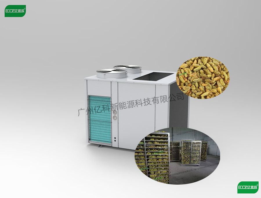 烘干:將洗好的葡萄放入托盤,再放進科能葡萄烘干房。初溫45~50℃,終溫70~75℃;干燥時間42~60h。系統(tǒng)除濕量要大,脫水率已達70%。全干后仍保持綠色。干燥適度的葡萄干,肉質(zhì)柔軟,用手緊壓無汁液滲出。含水量為 15%~17%,干燥率為3:1~4:1。