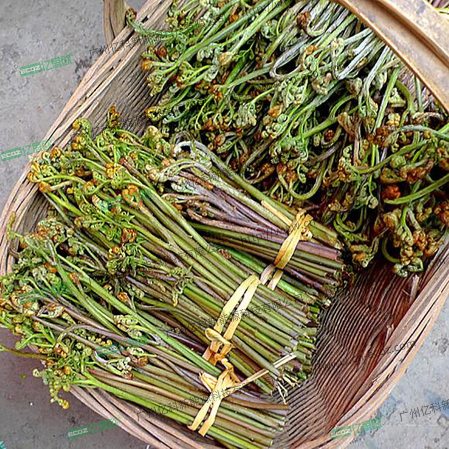 蕨菜殺青:蕨菜摘回后,要馬上進(jìn)行處理,防止老化。將清潔整理好的蕨菜在沸水中熱燙7~8分鐘。傳統(tǒng)蕨菜干是直接把處理過(guò)的蕨菜放在太陽(yáng)底下晾曬至干,品質(zhì)容易受天氣的影響。