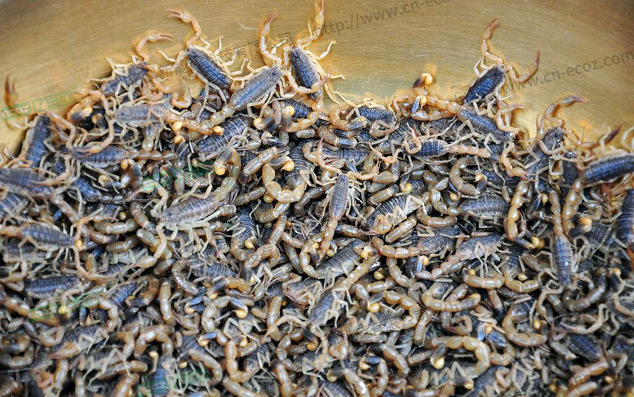首先蝎子帶回來后,先放三五天,在容器里不停爬動(dòng),自然消耗體內(nèi)雜物。把蝎子放進(jìn)有少量食鹽的水里面,蝎子不斷的喝水吐水,吐出肚子里的雜質(zhì),也對肚子內(nèi)部進(jìn)行消毒處理,待蝎子快爬不動(dòng)的時(shí)間,再用清水,清洗兩遍以上。蒸煮煮沸后的蝎子要進(jìn)行晾曬,濾干水分。